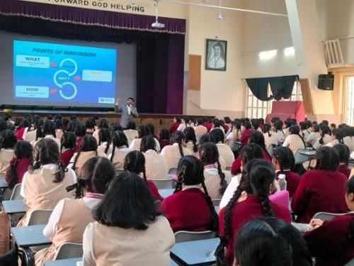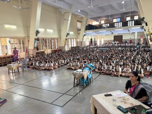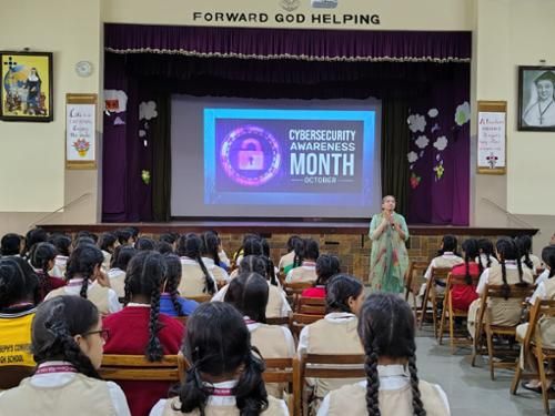 A cyber security awareness session was held for students of Std VII, VIII & IX in the school hall