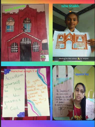 September 8th is celebrated as Foundation Day of the Daughters of the Cross Congregation. On this day, an online class was taken for the students of Std VIA and the significance of this day was explained with the help of a presentation on Blessed Mother Marie Therese. After the class, the students were told to draw a picture of any of their memories attached with the school.