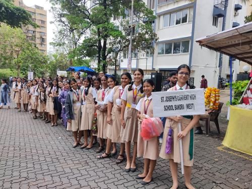 35 Catholic Students from Std IX And X, accompanied by Principal Sr. Lalita Lopes, Vice-Principal Sr. Jenny Joseph and Teacher Lissa Lopes walked to the Mount and participated in the Eucharistic celebration organised by the Archdiocesan Board of Education, Mumbai