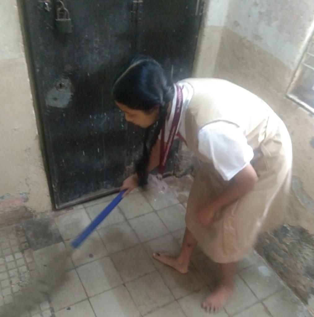 Day 7: Students were engaged in community work by cleaning their surrounding areas.